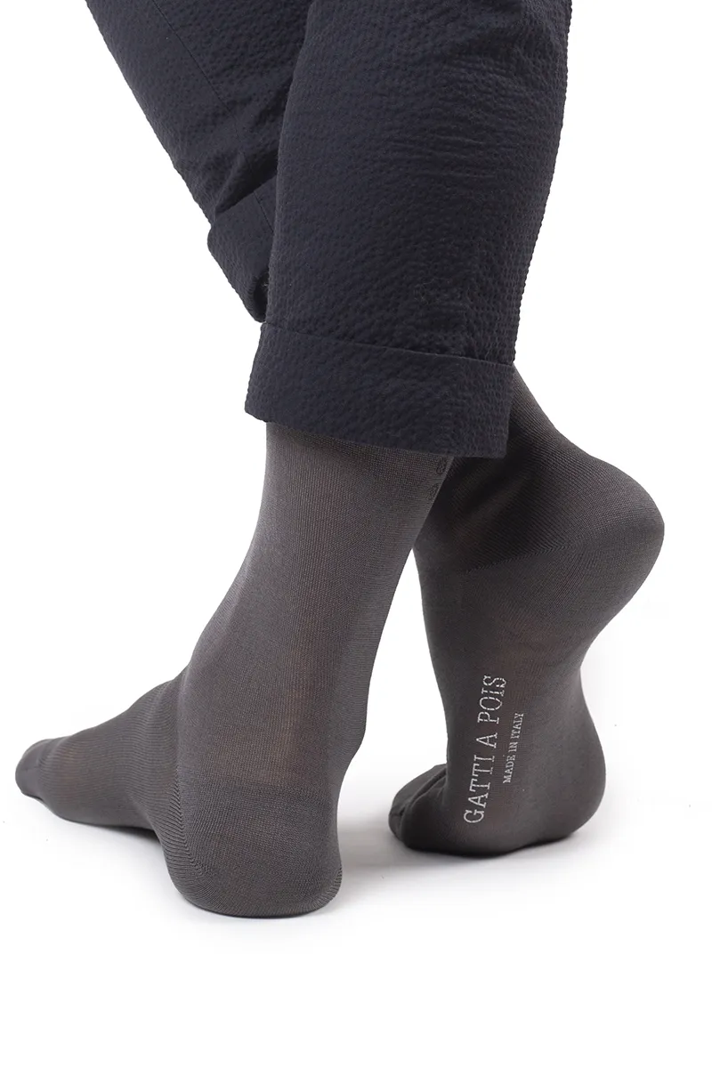 Calze Mezzagamba in Puro Filo di Scozia a Lavorazione Liscia di Alta qualità Made in Italy rimagliate a mano. La lunghezza Francese (non sono calze corte) assicura Comfort e Eleganza italiana. Personalizzabili con Iniziali.