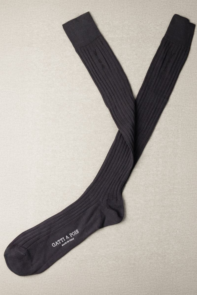 Calze in Puro Filo di Scozia a Costine di Alta qualità Made in Italy rimagliate a mano. Vestibilità perfetta e ideale per i Gentlemen contemporanei. Personalizzabili con Iniziali.