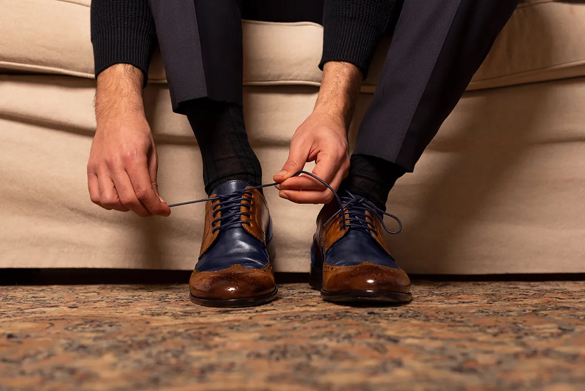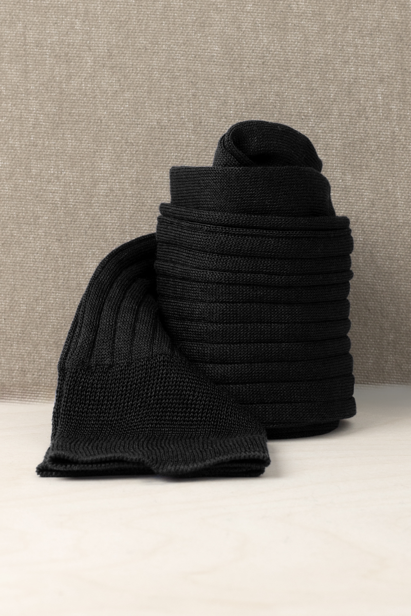 Calze in Puro Filo di Scozia a Costine di Alta qualitร Made in Italy rimagliate a mano. Vestibilitร perfetta e ideale per i Gentlemen contemporanei. Personalizzabili con Iniziali.