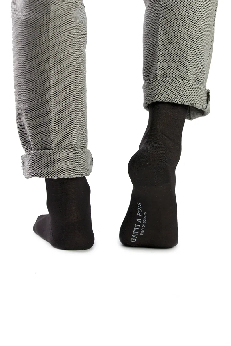Calze in Puro Filo di Scozia a Lavorazione Liscia di Alta qualità Made in Italy rimagliate a mano. Vestibilità perfetta e ideale per i Gentlemen contemporanei. Personalizzabili con Iniziali.