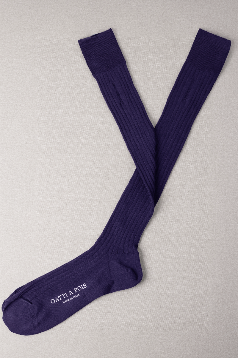 Calze in Puro Filo di Scozia a Costine di Alta qualità Made in Italy rimagliate a mano. Vestibilità perfetta e ideale per i Gentlemen contemporanei. Personalizzabili con Iniziali.