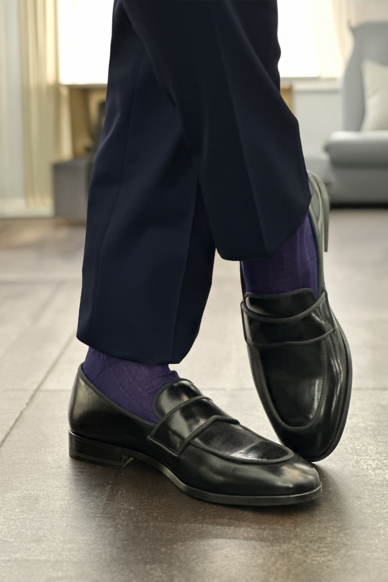 Calze Mezzagamba in Puro Filo di Scozia a Costine di Alta qualità Made in Italy rimagliate a mano. La lunghezza Francese (non sono calze corte) assicura Comfort e Eleganza italiana. Personalizzabili con Iniziali.