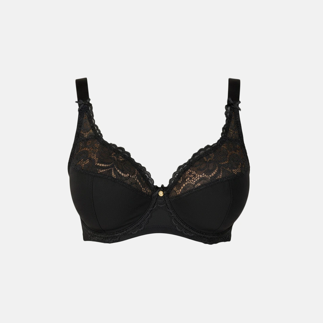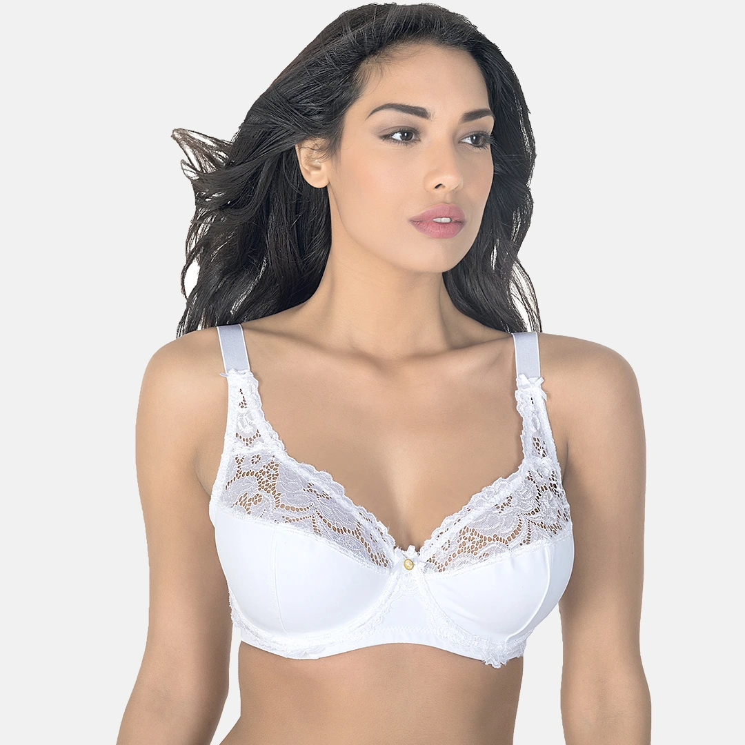 Reggiseno in microfibra e pizzo con ferretto comfort e coppe foderate in cotone.