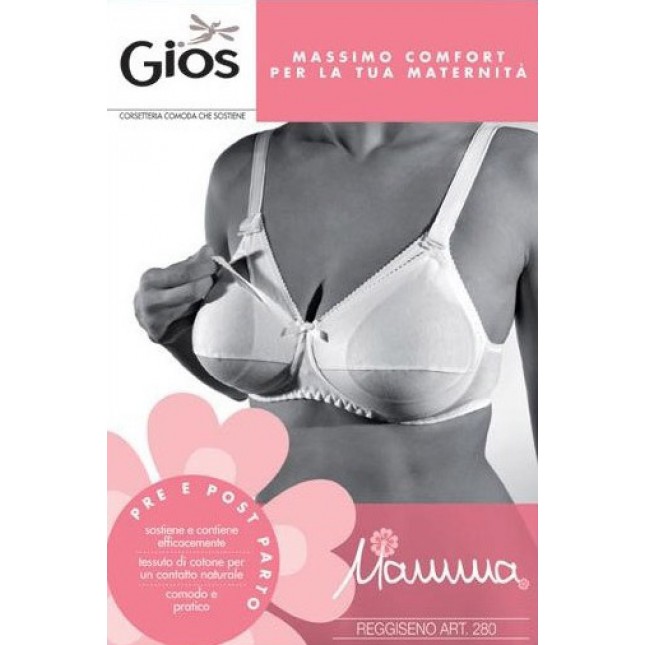 REGGISENO GIOS ART. 280 REGGISENO DONNA ALLATTAMENTO LINEA MAMMA IN COPPA B IN PURO COTONE PER UN CONTATTO NATURALE LA COSTRUZIONE INTERNA DELLA COPPA SORREGGE IL SENO ANCHE DURANTE L’ALLATTAMENTO LO SGANCIO DELLA COPPA E’ COLLOCATO MOLTO IN ALTO PER NON GRAFFIARE IL VOLTO DEL BAMBINO TAGLIE DISPONIBILI: 3-4-5-6-7-8 COLORE DISPONIBILE: BIANCO QUALITA’ GIOS