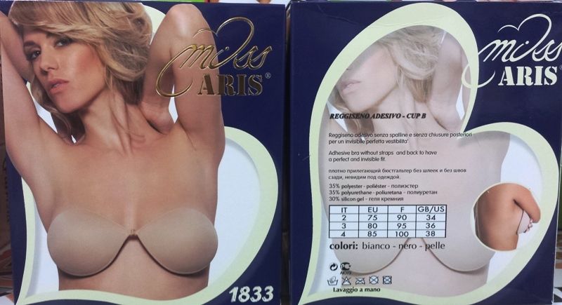 REGGISENO ARIS ART. 1833 REGGISENO INVISIBILE ADESIVO CON COPPE IN SILICONE MAGIC BRA LAVABILE TAGLIE DISPONIBILI: 1-2-3-4 COLORE DISPONIBILE:PELLE Reggiseno adesivo totalmente invisibile della Aris, formato soltanto dalle 2 coppe con esterno in tessuto e interno in silicone adesivo. Nessuna spallina ne’ fascia dorsale, per cui non sostiene il seno, ma lo copre. Puรฒ essere indossato sotto qualsiasi abito senza essere notato. Le due coppe sono unite al centro tramite una comoda allacciatura, che dona “stabilitร ” al seno. Puรฒ essere lavato a mano con sapone neutro e riutilizzato innumerevoli volte. Funziona cosรฌ: una volta pulito e asciugato bene il seno,…