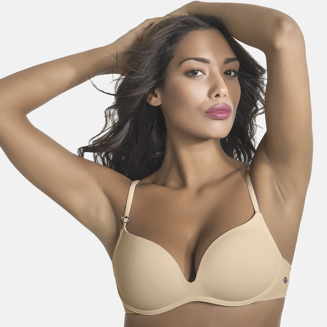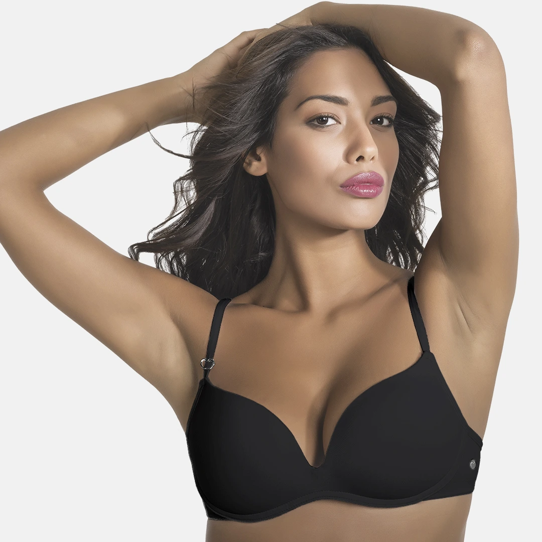 Reggiseno imbottito in microfibra morbida, senza ferretto, perfetto per un sostegno naturale. Disponibile in bianco, nero e pelle.