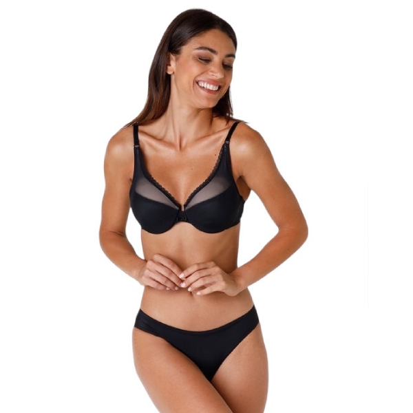 Le coppe preformate e doppiate sostengono il seno in modo armonioso, mentre il ferretto invisibile modella e definisce senza costringere.