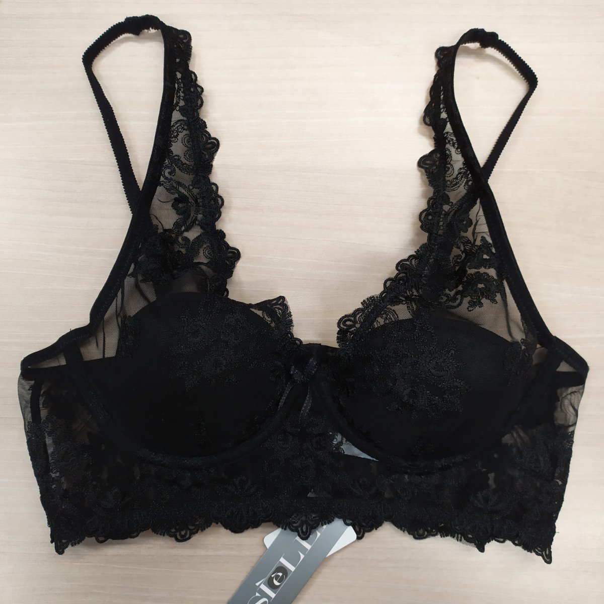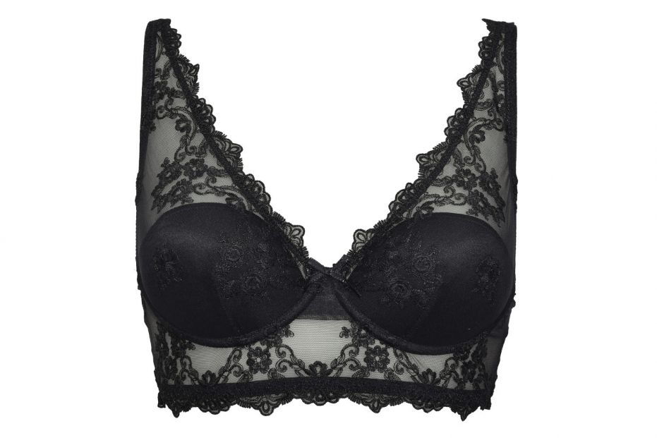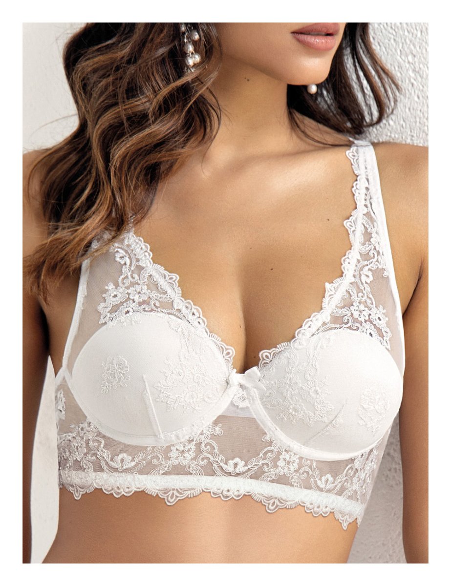 Bralette imbottita con ferretto in tulle preziosamente ricamato.