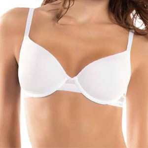 Reggiseno a balconcino con ferretto e leggerissima imbottitura preformata traspirante in microfibra con dorsale in microfibra jaquard e cuciture piatte antisegno.