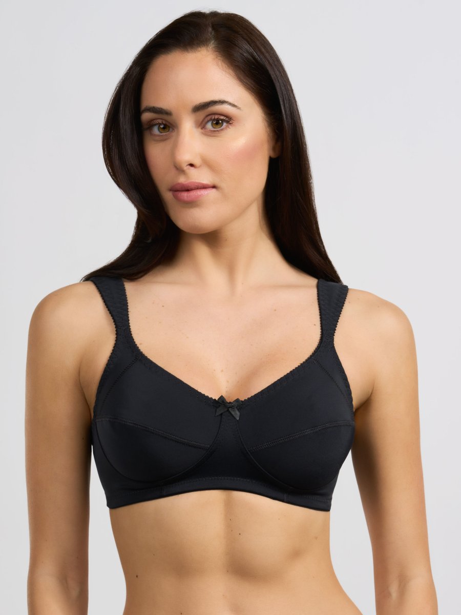 Reggiseno in tessuto elasticizzato con coppe foderate in cotone e spalla larga imbottita.