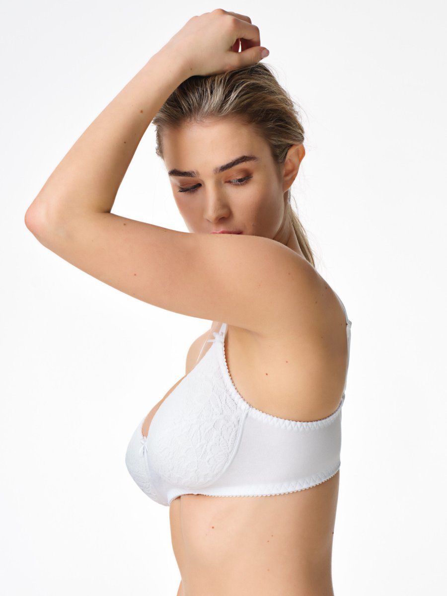 Reggiseno in cotone elastico, coppe in pizzo elastico, imbottite. La qualità e il prezzo contenuto, affiancati a una costante cura dei dettagli, dal taglio alla cucitura, alle rifiniture, fanno del capo Spiman un prodotto apprezzato, dal gusto intramontabile.