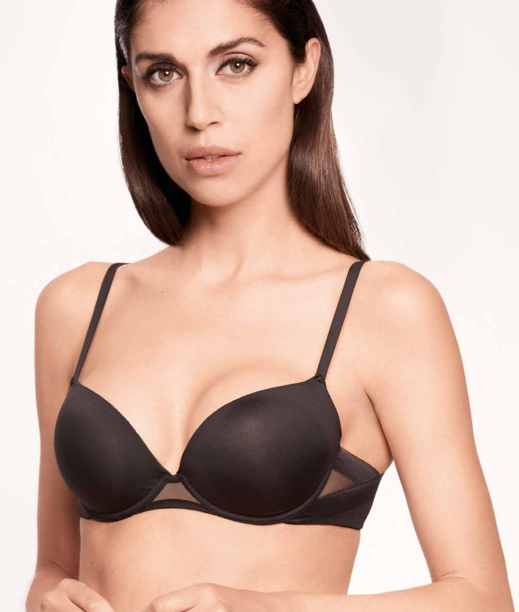 Reggiseno donna con leggera imbottitura soft up in microfibra setificata e schiena con dettaglio extra. Composizione: PA76 EA24
