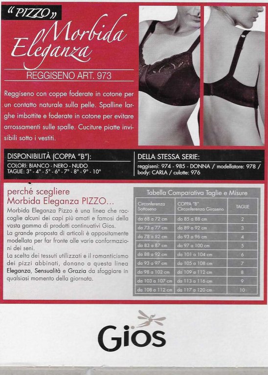 REGGISENO GIOS ART. 973 REGGISENO DONNA CON COPPE FODERATE DOTATO DI SPALLINE LARGHE E CUCITURE PIATTE INVISIBILI SOTTO I VESTITI TAGLIE DISPONIBILI: 3-4-5-6-7-8-9-10 COLORI DISPONIBILI: BIANCO-NERO-NUDO QUALITA’ GIOS