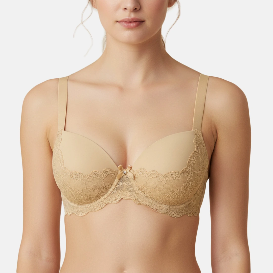 Reggiseno in microfibra e pizzo con coppe imbottite e ferretto comfort. Disponibile in bianco, nero e noisette.