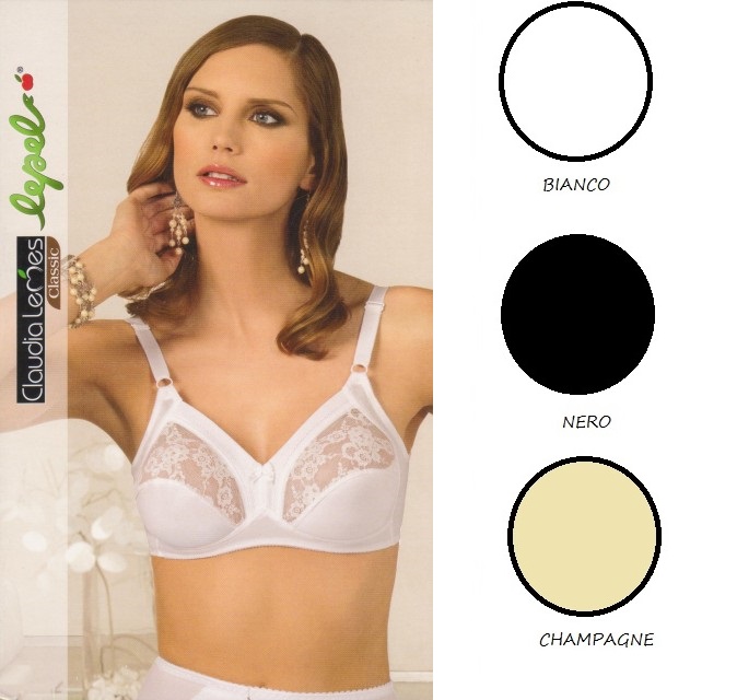 REGGISENO LEPEL LINEA CLAUDIA LEMES MODELLO DELIA REGGISENO DONNA CON COPPE NON IMBOTTITE SENZA FERRETTO REALIZZATO IN TESSUTO ELASTICIZZATO CON INSERTI IN PIZZO DOTATO DI BRETELLINE LARGHE CHE GARANTISCONO MASSIMO SOSTEGNO E COMFORT TAGLIE DISPONIBILI: 3-4-5-6-7-8 COLORI DISPONIBILI: BIANCO-NERO QUALITA’ LEPEL