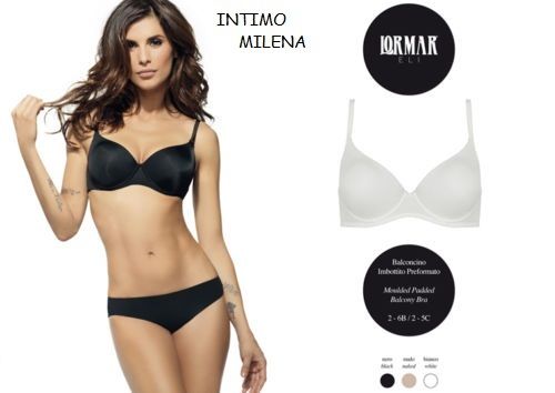 REGGISENO LORMAR ART. ELI REGGISENO A BALCONCINO PREFORMATO IMBOTTITO DOTATO DI DOPPIE SPALLINE IN COPPA B TAGLIE DISPONIBILI: 2-3-4-5-6 COLORI DISPONIBILI: BIANCO-NERO-NUDO TAGLIA COPPA: B QUALITA’ LORMAR