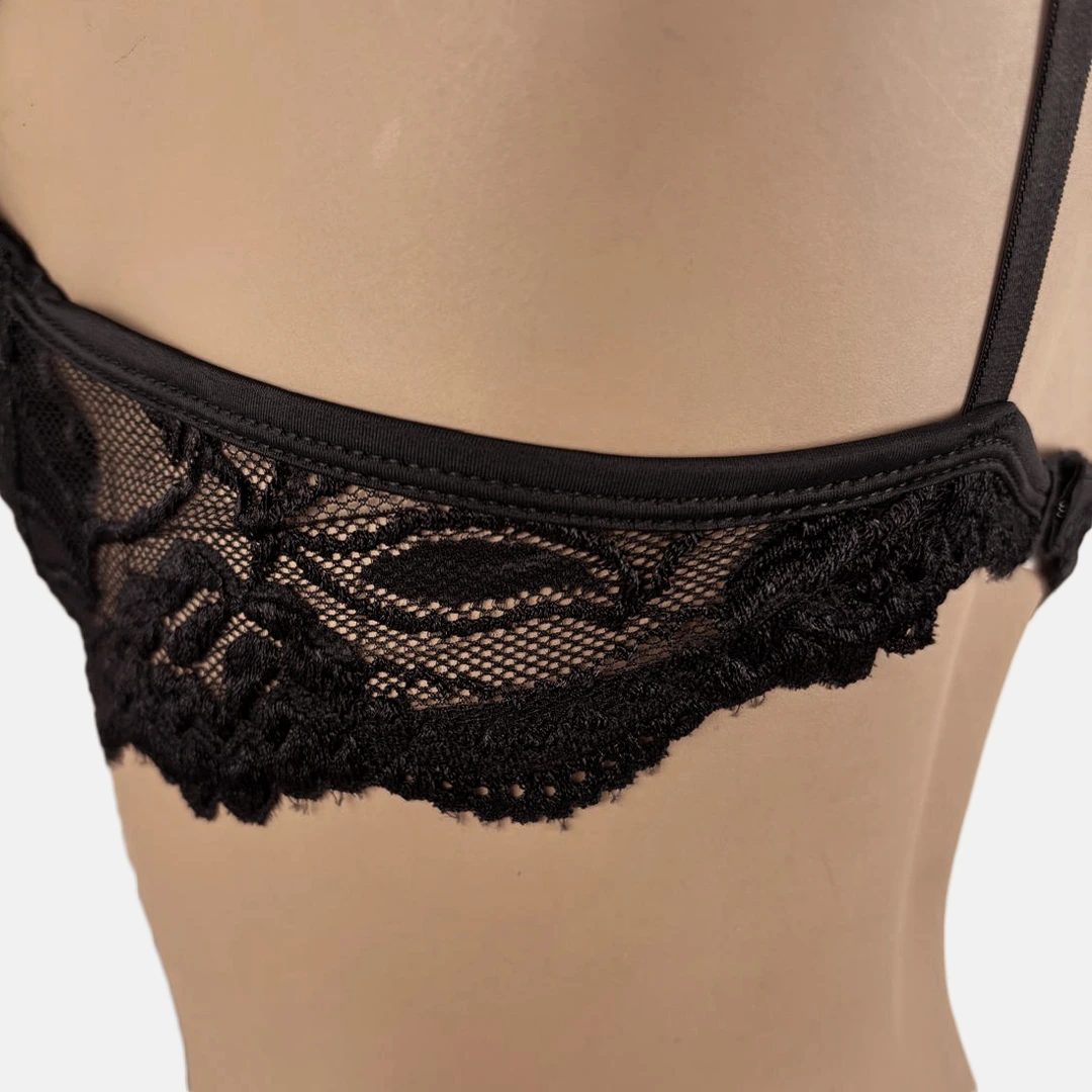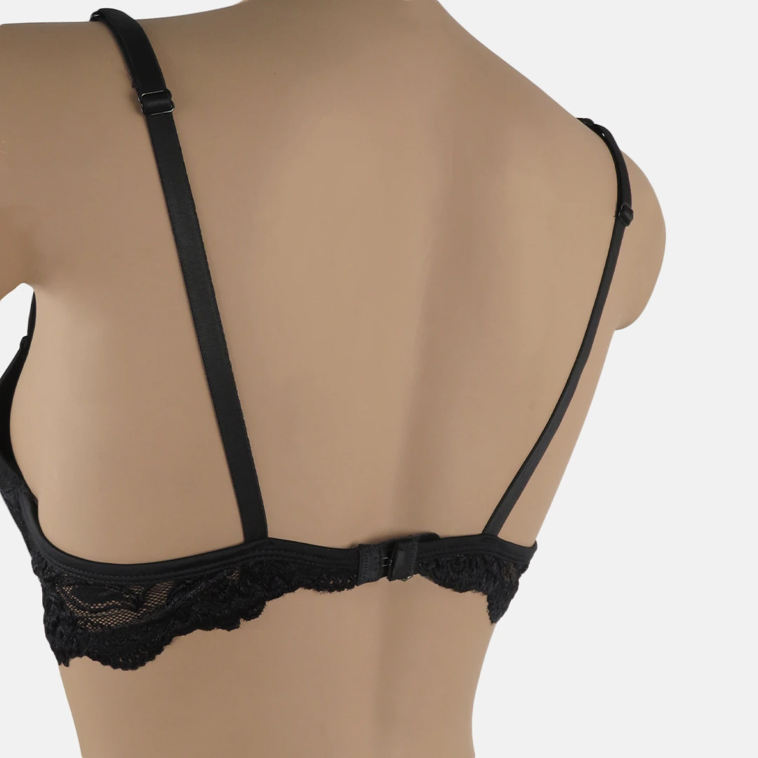 Il pizzo raffinato, morbido e avvolgente, si posa delicatamente sulla pelle, mentre la imbottitura in gel modella il décolleté creando un effetto pieno ma naturale.