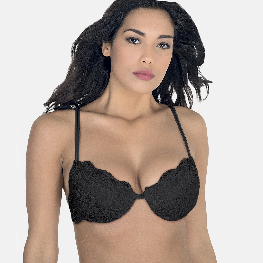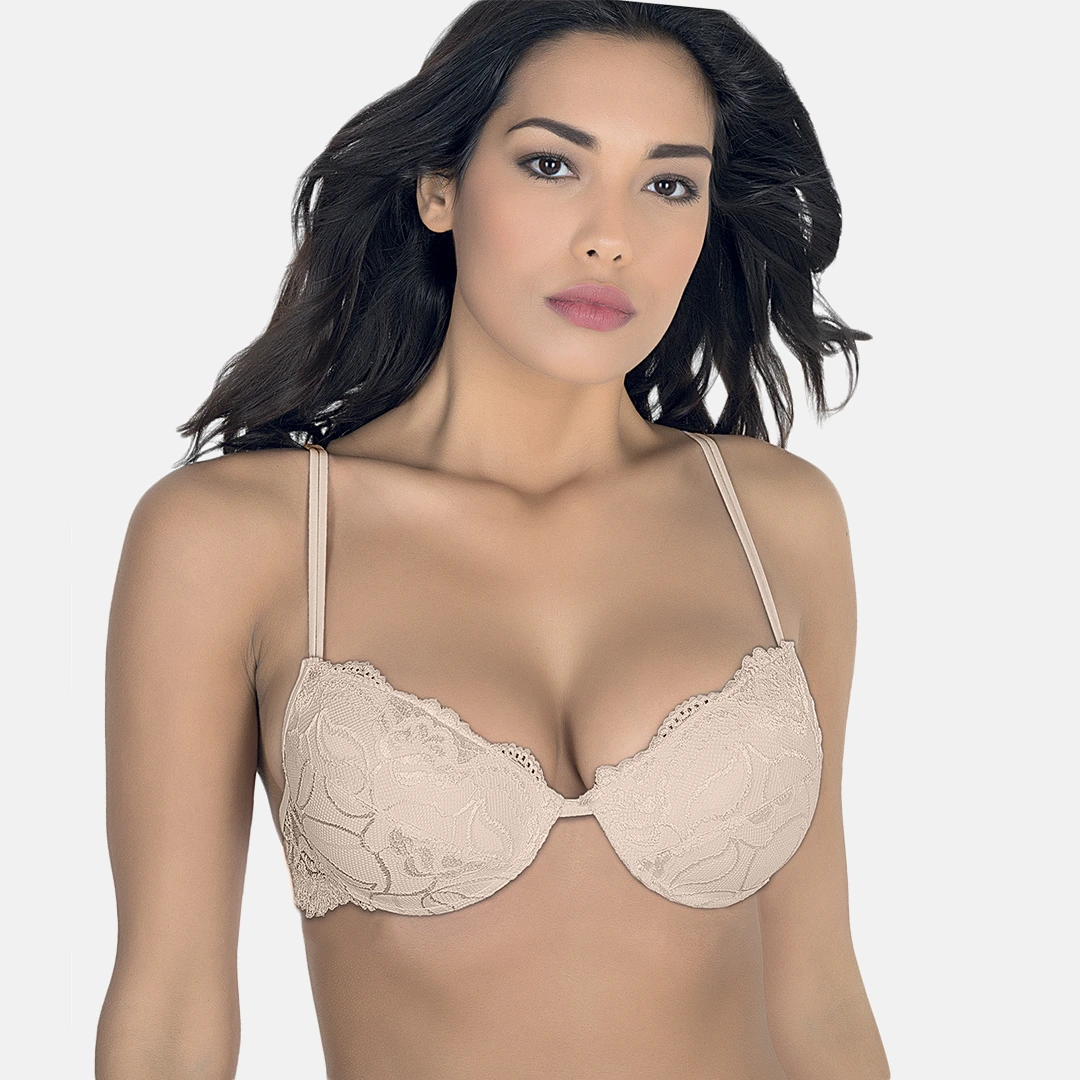 Reggiseno in pizzo con imbottitura in gel e ferretto comfort, per un décolleté pieno e armonioso.