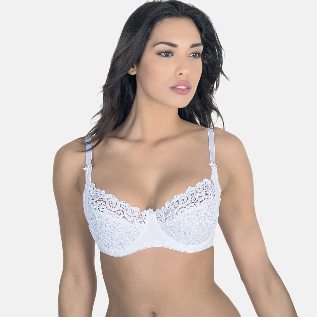 Il Reggiseno VALENTINA Coppa C avvolge il seno con pizzo elasticizzato e dona supporto grazie al ferretto comfort. Elegante e comodo per l’uso quotidiano.