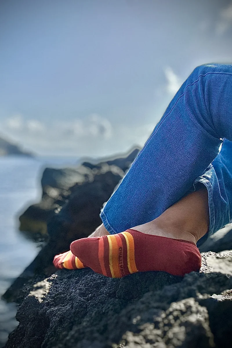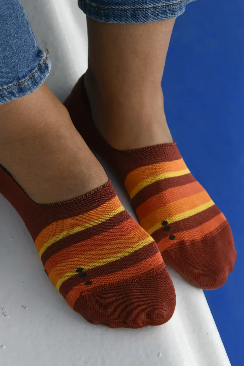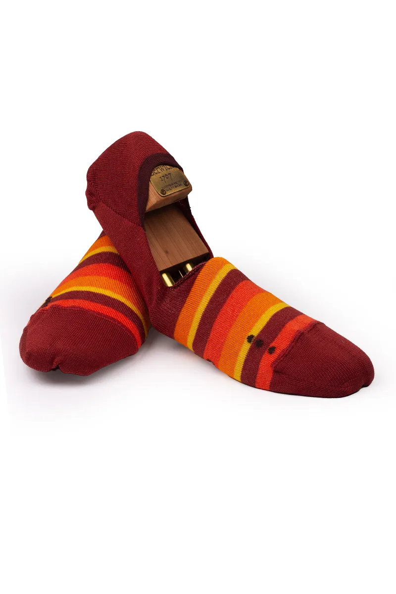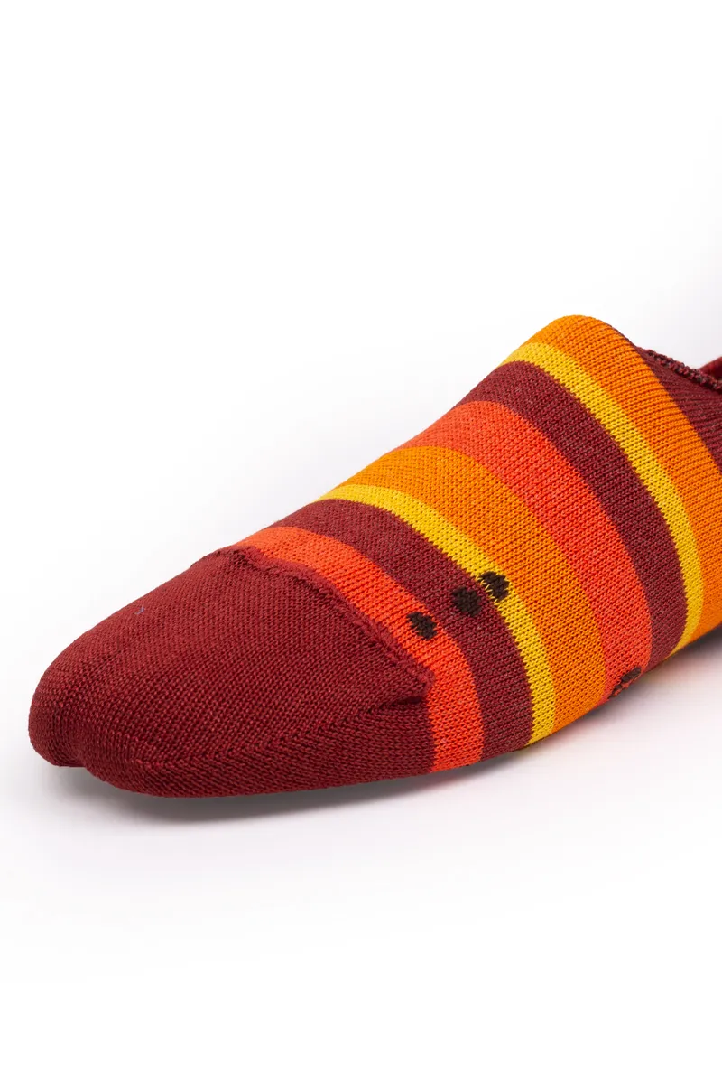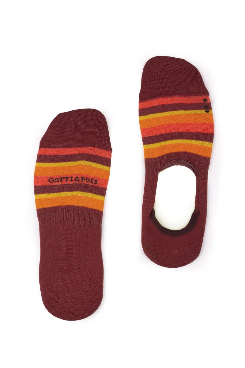 TIPOLOGIA: SALVAPIEDE UNISEX MATERIALE: FILO DI SCOZIA FANTASIA: RIGHE BORDEAUX, ARANCIO, OCRA, ROSSO COMPOSIZIONE: 80% Filo di Scozia, 17% Lycra, 3% Elastan Manutenzione: lavare a mano o in lavatrice temperatura massimo 40ยบ. NON UTILIZZARE ASCIUGATRICE. Non stirare. I Salvapiedi di Gatti a Pois sono un Must del nostro marchio, sono realizzati in puro Cotone, rinforzato da bassissima percentuale di Lycra che li rende ben aderenti al piede, ma allo stesso tempo freschi e puliti. Perfetti da indossare con mocassino o scarpe in cuoio, ma anche con Sneakers se non si vuol far intravedere il bordino del fantasmino. Consigliati anche a…