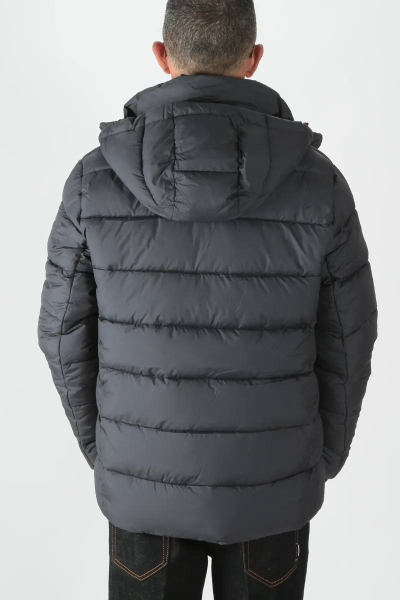 Piumino trapuntato realizzato in nylon idrorepellente. Pratico cappuccio con coulisse rimovibile. Chiusura con zip doppio cursore. Tasche con zip. Tasche interne. La coulisse interna al fondo e i polsini elastici regolabili offrono una vestibilità comoda e protezione extra da vento e dalla pioggia. Logo gommato sulla manica sinistra tono su tono. Imbottitura plumtech animal free.