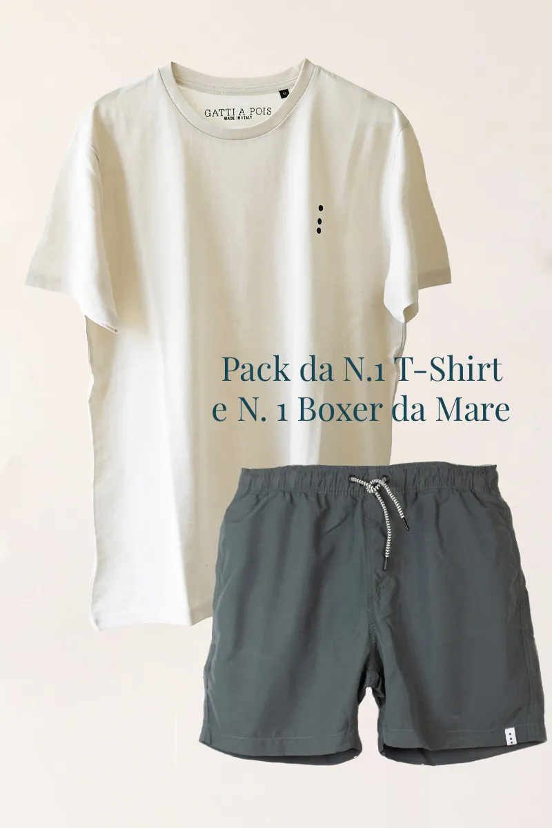 Con il Pack, T-Shirt e Boxer mare, risparmi il 30% da listino e sopratutto puoi scegliere il Tuo Stile abbinandone i Colori. Entrambi i capi sono Made in Italy e anche personalizzabili con le Tue Iniziali. Crea il Tuo Stile!