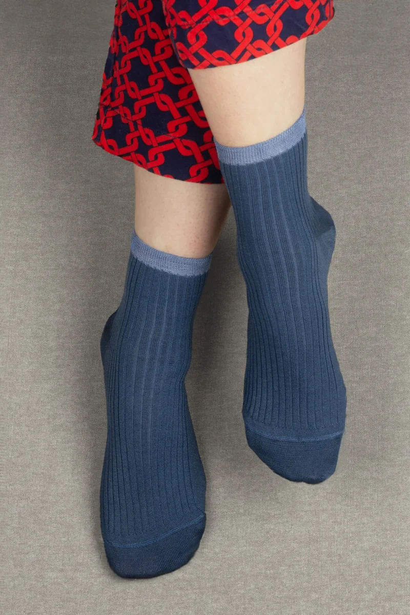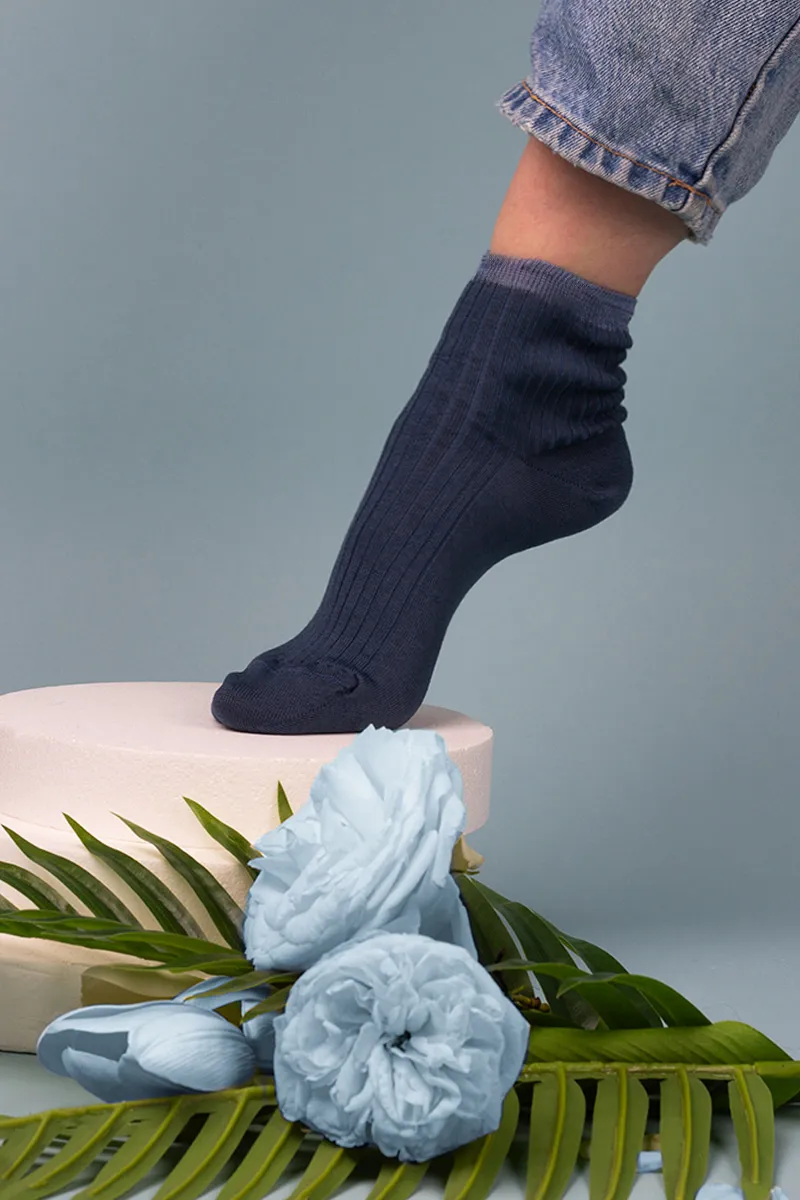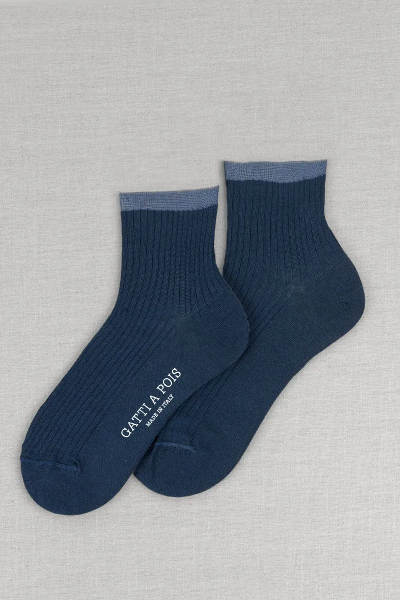 TIPOLOGIA: CALZA LUNGHEZZA 3,5 cm MATERIALE: PURO FILO DI SCOZIA FANTASIA: CALZA A COSTINE CON POLSO A CONTRASTO COLORE: BLU E AZZURRO SCURO Calzini da Donna in Puro Filo di Scozia Made in Italy, realizzate con le nostre macchine artigianali a 200 aghi. Il Comfort e i Filati Naturali da oggi anche per le donne, senza rinunciare all’Eleganza e alla Classe. Queste calze con rinforzo su tallone e punta, sono adatte sia ad uno stile Classico che ad uno stile Casual. Le cuciture sono piatte e impercettibili. La Lunghezza di questo modello di Calzini, misurata dal tallone fino al polso…
