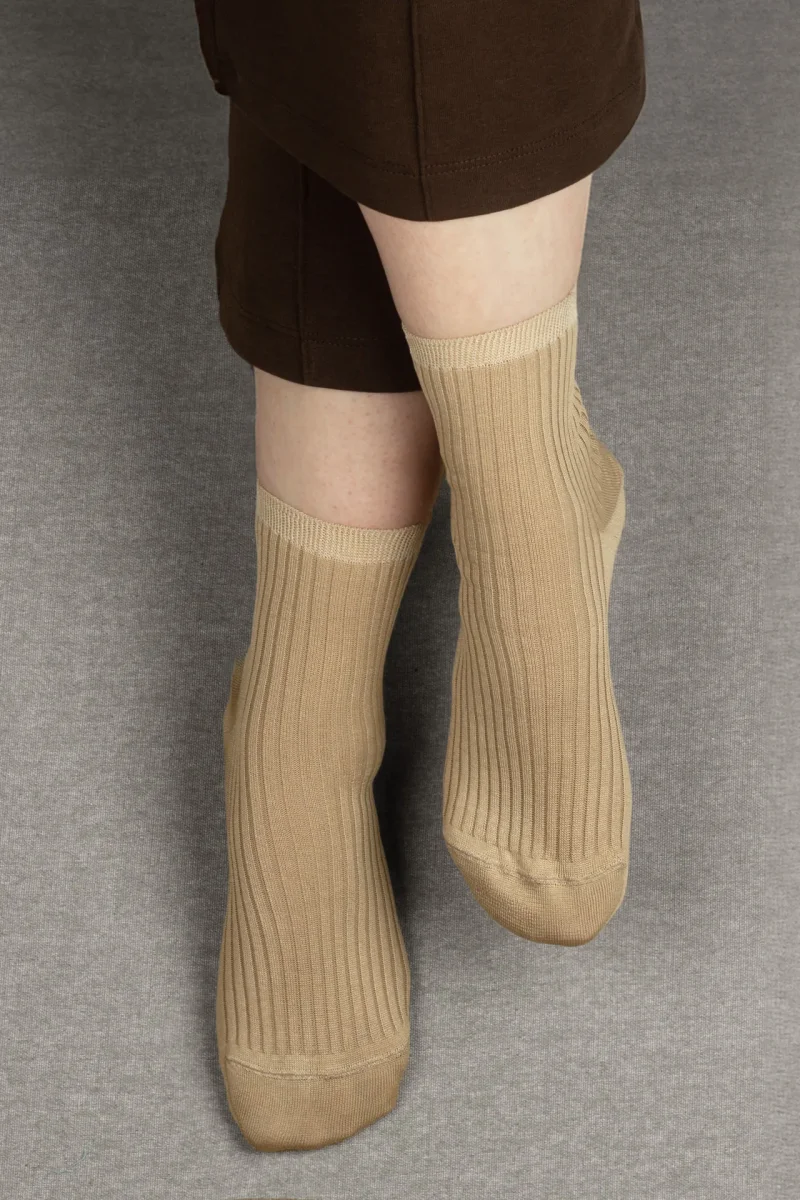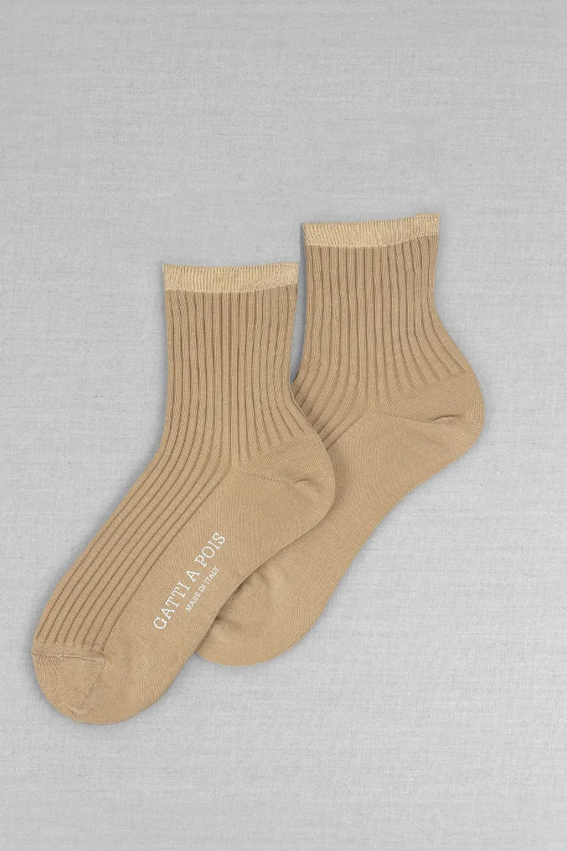 TIPOLOGIA: CALZA LUNGHEZZA 3,5 cm MATERIALE: PURO FILO DI SCOZIA FANTASIA: CALZA A COSTINE CON POLSO A CONTRASTO COLORE: DESERTO E ECRÙ Calzini da Donna in Puro Filo di Scozia Made in Italy, realizzate con le nostre macchine artigianali a 200 aghi. Il Comfort e i Filati Naturali da oggi anche per le donne, senza rinunciare all’Eleganza e alla Classe. Queste calze con rinforzo su tallone e punta, sono adatte sia ad uno stile Classico che ad uno stile Casual. Le cuciture sono piatte e impercettibili. La Lunghezza di questo modello di Calzini, misurata dal tallone fino al polso è…
