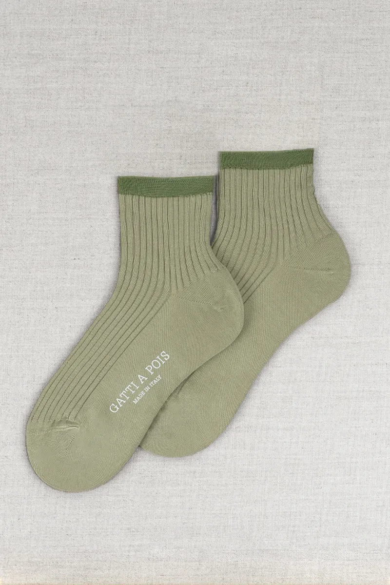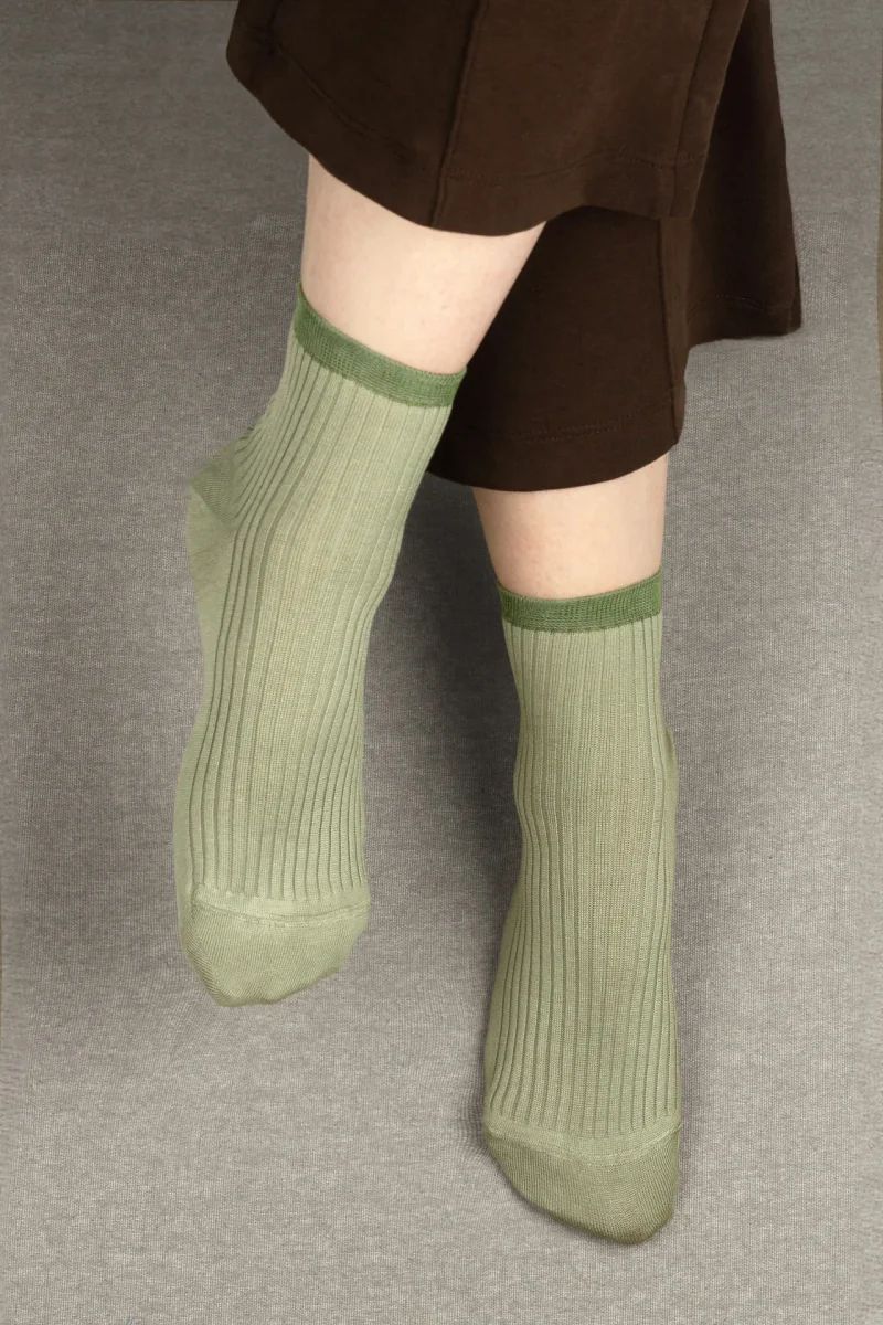 TIPOLOGIA: CALZA LUNGHEZZA 3,5 cm MATERIALE: PURO FILO DI SCOZIA FANTASIA: CALZA A COSTINE CON POLSO A CONTRASTO COLORE: VERDE SALVIA E VERDE LODEN Calzini da Donna in Puro Filo di Scozia Made in Italy, realizzate con le nostre macchine artigianali a 200 aghi. Il Comfort e i Filati Naturali da oggi anche per le donne, senza rinunciare all’Eleganza e alla Classe. Queste calze con rinforzo su tallone e punta, sono adatte sia ad uno stile Classico che ad uno stile Casual. Le cuciture sono piatte e impercettibili. La Lunghezza di questo modello di Calzini, misurata dal tallone fino al…