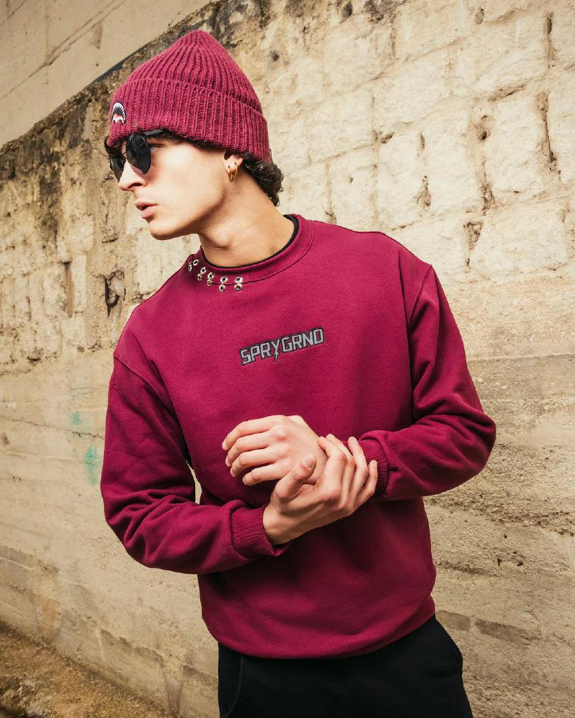 SPRAYGROUND – FELPA UOMO SP805GBRDX LIGHTNING SHARK CREWNECK BORDEAUX