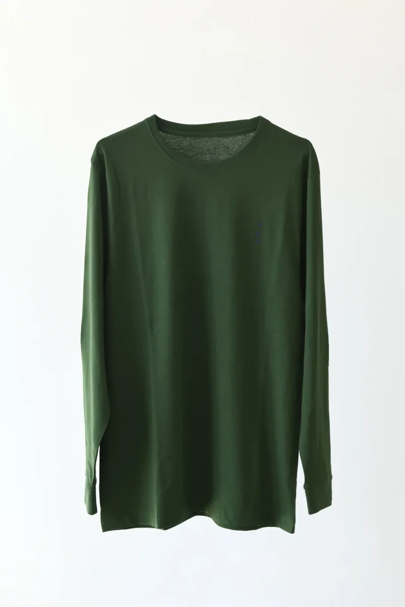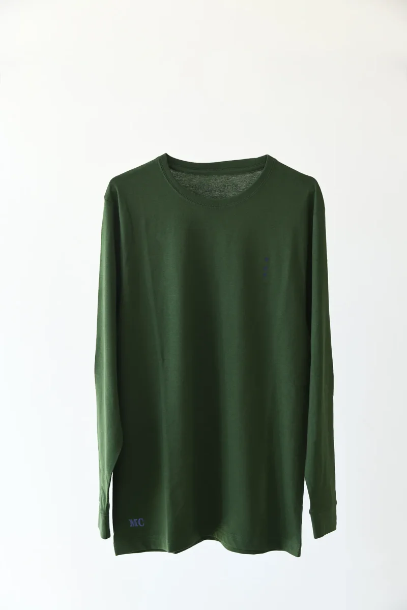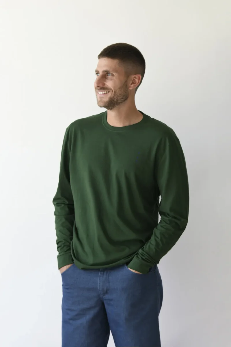 T-Shirt Puro Cotone Manica Lunga Verde Loden con Iniziali Ricamate o Senza!