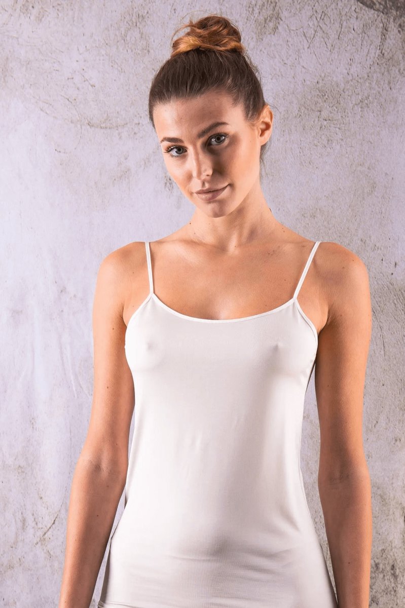 Questo top canotta in viscosa satin si distingue per il tessuto morbido e leggermente lucente, che scivola sulla pelle con leggerezza. Le spalline regolabili assicurano una vestibilità perfetta, mentre la linea fluida lo rende un capo versatile: intimo elegante, sottogiacca o top da sera.