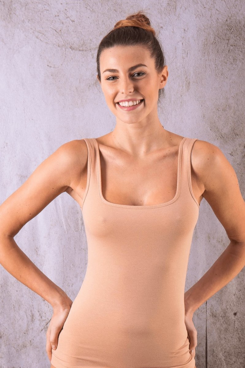 Realizzato in cotone modal bielastico, questo top a spalla larga con scollo quadro unisce comfort e versatilità. Il tessuto naturale regala morbidezza e freschezza, mentre la linea pulita lo rende un capo intimo pratico e femminile. Perfetto da indossare sotto giacche o da solo.