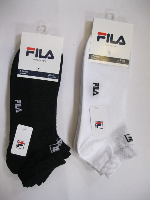 Tris calzino unisex sneakers invisibile Fila in cotone mercerizzato e logo sulla pianta. Il tessuto a rete sul dorso del piede, lo rende molto leggero. Composizione: CO70 PL30