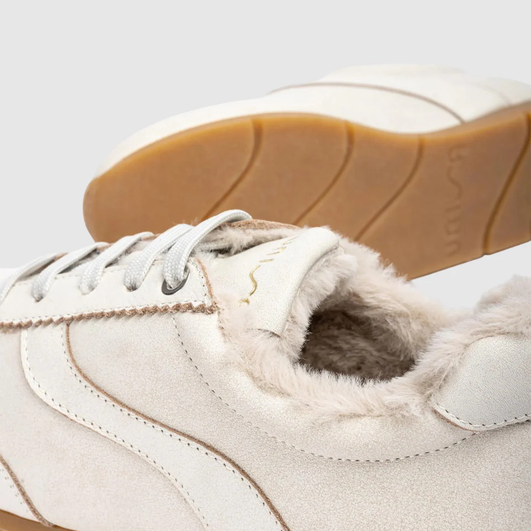 Dettagli prodotto: Sneakers in pelle avorio Fodera interna calda in pelo Soletta interna rimovibile Suola in gomma molto flessibile, leggera e antiscivolo Calzata regolare