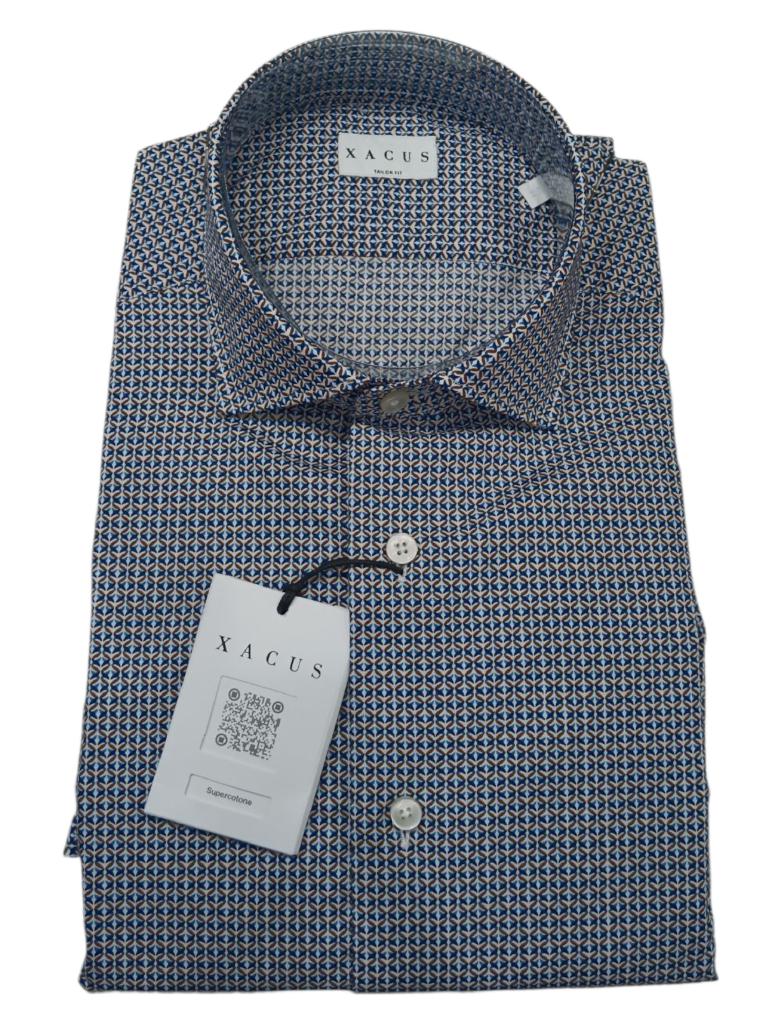 CAMICIA XACUS IN MICROFANTASIA TABACCO-BLU AZZURRA