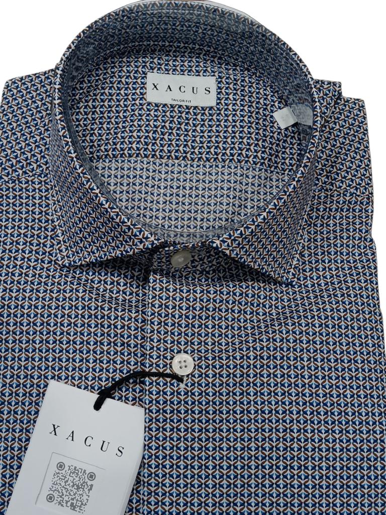 XACUS – CAMICIA MICROFANTASIA TABACCO-BLU AZZURRA